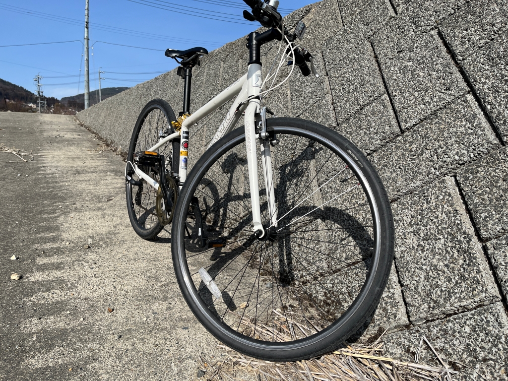 これが姪っ子からもらった自転車。アルミボディで前三段、後六段のなかなか本格的なもの。この車体の軽いこと! 高校生のころ解体屋に通って組み立てた自転車を思い出す。 |