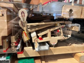最初の自由見学の時間でこんなピアノの鍵盤~打鍵の装置が丸見えのカットモデルを発見した。木材を加工して、たくさんの同じ機構を作るのはさぞかし手のかかることだろうと思った。