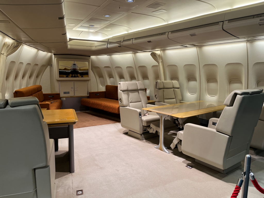 こちらは政府専用機の執務室の様子。写真だけ見ると本物みたいだ。他にも記者会見室とかの展示もあった。