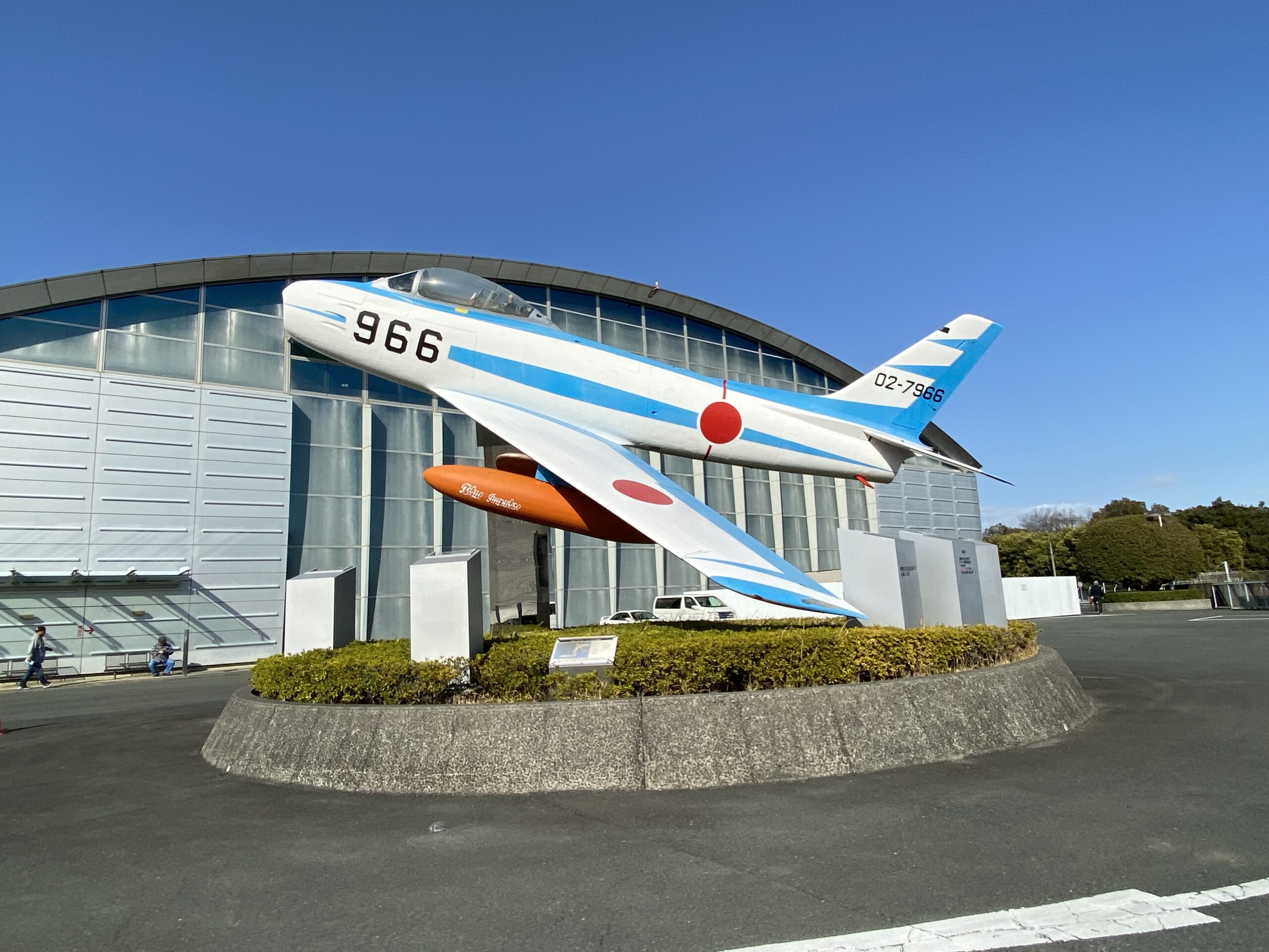 空自浜松広報館に着きました 来ました! 航空自衛隊 浜松広報館「エアパーク」。敷地に入ると昔のブルーインパルスがお出迎え。