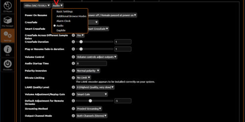 Player」タブの画面上のDAC名右のプルダウンから「Audio」を選択